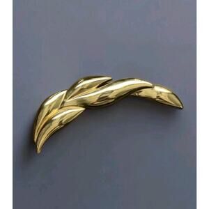Vintage Givenchy Gold Tone Leaf Brooch Pin Large Modernist Wave Runway 80s