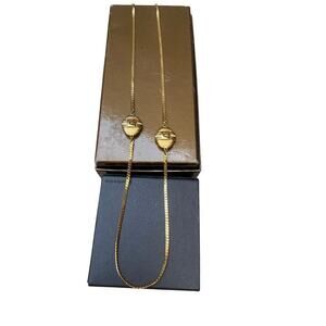 Add a touch of timeless luxury to your look with this vintage Givenchy gold-tone necklace. Featuring a signature round emblem and a sleek 30-inch chain, this piece is the perfect blend of elegance and bold style.