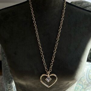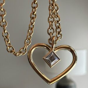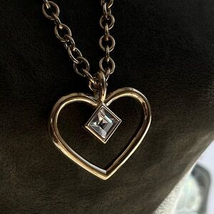 Vintage Givenchy Heart Angel Hollow Lind Diamond Rhinestone Gold Long Necklace