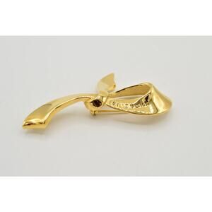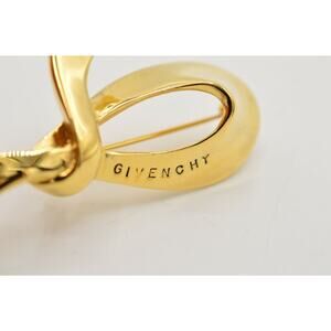 Vintage Givenchy Logo Pin Brooch Ribbon Bow Gold Runway Signed 1980s BinB