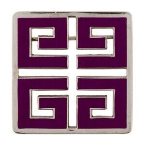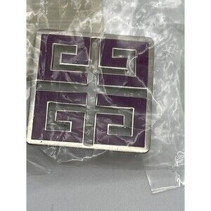 Lovely vintage square Silvertone and purple enamel designer Givenchy pin brooch. Measures 1 1/4 inch square. Brand new still in stapled original packet. Comes from a smoke free home.