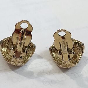 Add a touch of vintage glamour to your jewelry collection with these stunning Givenchy Paris New York clip earrings. The fan/shell design and yellow gold plated base metal give these earrings a classic and timeless look. Measuring at 2cm in length, these huggie style earrings are perfect for any occasion, whether it's an engagement, wedding, birthday, or graduation.
