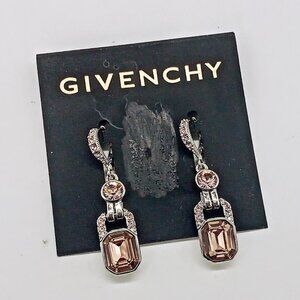 Sparkly peachy pink faceted emerald-shaped crystal drop pierced earrings encased in silver-finish from Givenchy.