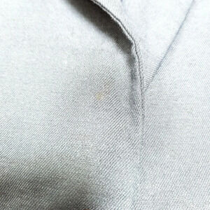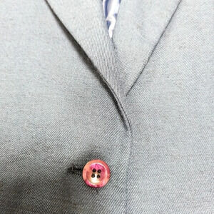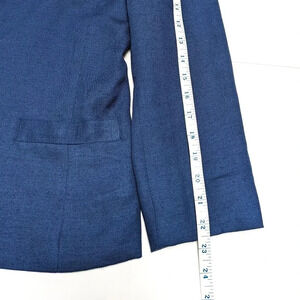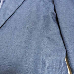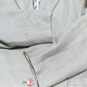Good pre-owned condition. Has two small dark spots, shown in last four photos. One is on the left arm cuff and the other is underneath the right lapel (not visible when worn). Please see all photos.