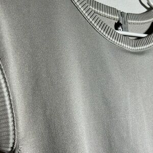 Cap sleeves, zipper at back of neck. White trims. Very light horizontal line on back in weave. Fabric is silky and soft. This would look great with a white tennis skirt or over an untucked white button down shirt. European size 36. One of the tags looks like a Union made tag. The tag is faded so I can’t be sure.