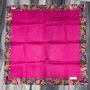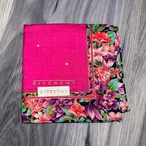 Vintage Givenchy Vibrant Pink Cotton Handkerchief w Floral Border