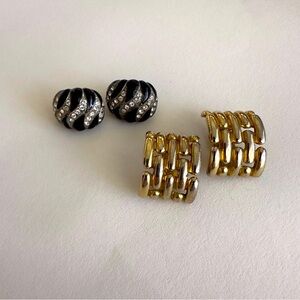 2 Pairs Bundle LOT Vintage clip On Earrings Set 90s 80s, unsure of era but most likely late 80s/early 90s