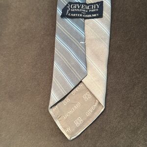 Vintage Givency Gentleman Paris For Carter Holmes Blue & Gray Striped Tie with embroidered Givenchy Logo