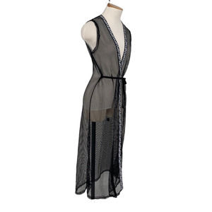 Vintage Giween Euro Mesh Fishnet Wrap Robe Black Boho Funky