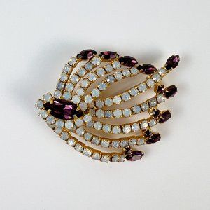 Vintage Glam Prong Set Faux Opal Purple Amethyst Rhinestone Brooch Pin Goldtone