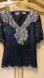 Pearl bead trim and long black beads on ends of short sleeve and bottom hem.