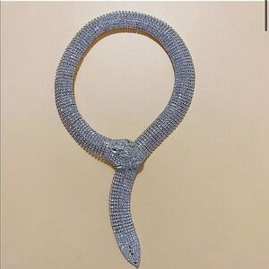 Vintage Glamorous White Gold Plated Crystal Cubic Zircon Snake Viper Necklace