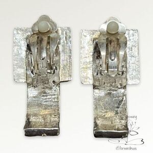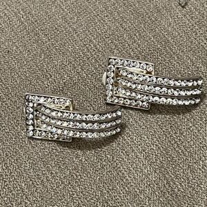 Adorned with three lines of radiant rhinestones and featuring a rhinestone square at the top encircling the rest of the earrings, this pair is a true masterpiece of vintage craftsmanship. The interplay of light on the rhinestones adds a touch of sparkle, making these earrings a captivating accessory for any occasion.
