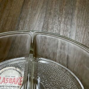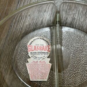 Clear glass divided dish by Glasbake. Perfect for serving or baking.