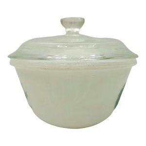 Vintage Glasbake J235 1Qt Casserole Dish Herb Garden Pattern With Lid Milk Glass