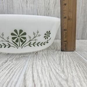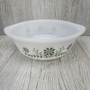 Vintage Glasbake Mixing Bowl 2QT White Green Daisy Floral USA 8in Ovenware Bakeware