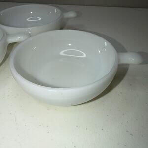 Vintage Glasbake White Milk Glass Soup / Cereal Bowls – 5" Lug Handle – USA Made