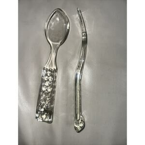 Vintage Glass 9.5" Serving Fork And Spoon Set Embossed Diamond Pattern EUC