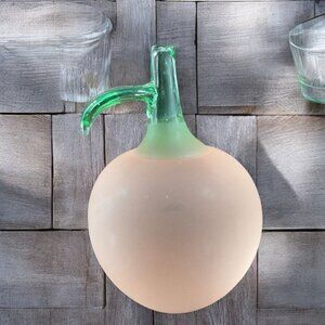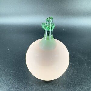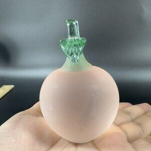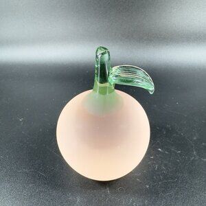 Vintage Glass Apple Fruit Figurine Paperweight Frosted With Green Leaf Top VTG