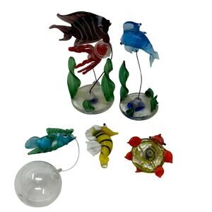 Vintage Glass Aquarium Fish Ornaments Submersible Set of 5 Hand Blown
