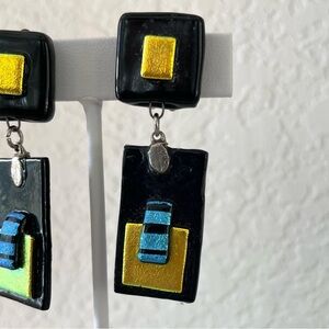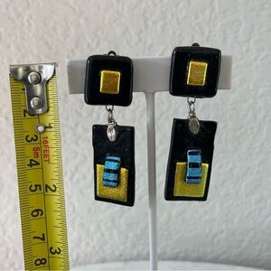 Vintage Glass Artisan Drop Earrings, Clips