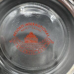 Vintage Glass Ashtray Resorts International Hotel Casino Atlantic City The ashtray features the image of the boardwalk hotel & reads: "Resorts International Hotel Casino Atlantic City".
