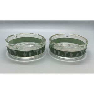 Vintage Glass Ashtray with Greek "Hellenic" Design Set of 2