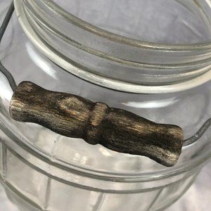 Vintage Glass Barrel Style General Store Pickle Jar Wire & Wood Handle No Lid