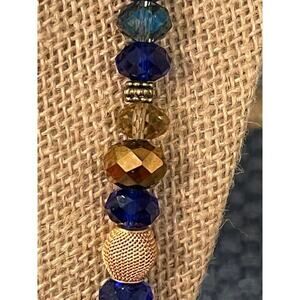 DETAILS: This listing is for a vintage glass bead necklace. Cobalt blue. Gold tone. Faceted. Hook clasp. Measures 21" long.