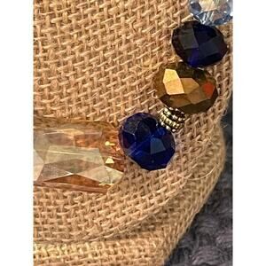 Vintage Glass Bead Necklace Cobalt Blue Gold Tone Faceted Hook Clasp - 21”