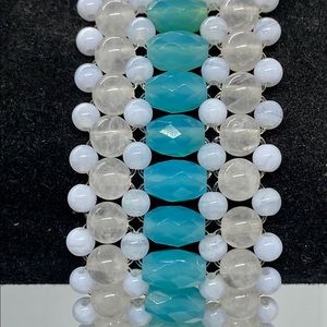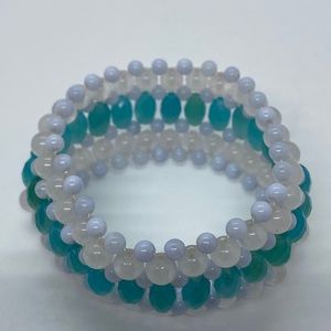 Maker Unknown Beautiful Sea foam Blue/green Glass Beads w/Milk Glass & White Glass Pearl Beading.