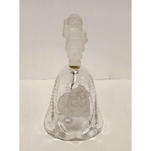 Charming vintage glass bell with etched Santa face and frosted Santa figurine as handle. Cute addition to Christmas decor or collection. Approx. 5 inches in height. Great vintage condition. Box included.