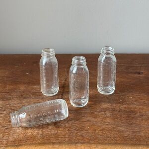 Set of 4 glass bottles. Lids / Rubber nipples not included.