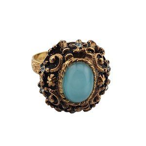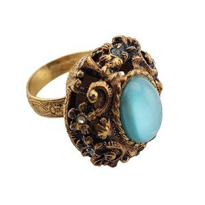 Vintage Glass & Brass Raised Adjustable Ring (A3253)