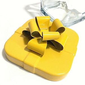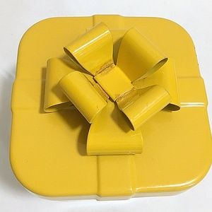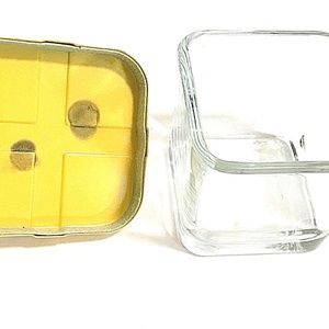 Vintage Clear Glass Candle Jar Square with Metal Bow Top Lid