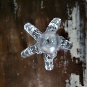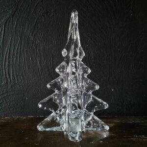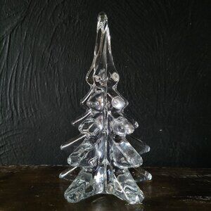 This handcrafted vintage clear glass Christmas tree adds an elegant touch to holiday décor. Its intricate design reflects light beautifully for festive charm.