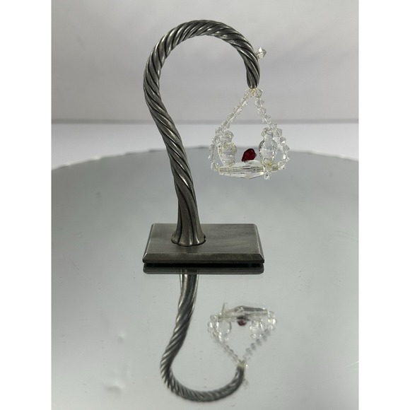 Vintage Glass Clear Love Birds & Pewter Stand 3.5"