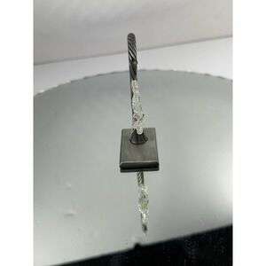 This vintage glass figurine features a pair of clear love birds perched on a pewter stand, standing at a height of 3 inches. The figurine is handmade and showcases lampwork production technique, adding to its artistic appeal. The all-over pattern, decorative features, and antique design give this piece a charming and timeless quality, making it a unique addition to any bird-themed collection or decorative display.