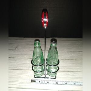 Vintage Glass Coca Cola Salt & Pepper Shakers Set With Metal Holder Made Taiwan