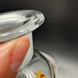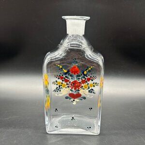 Vintage Glass Decanter Bottle Enamel Painted Floral Birds Red Yellow Blue READ