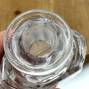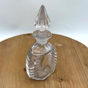 A sophisticated glass decanter with a striking ridged design and a pointed stopper, offering both elegance and functionality for spirits or home decor.perfume cologne pressed glass crystal small bottle