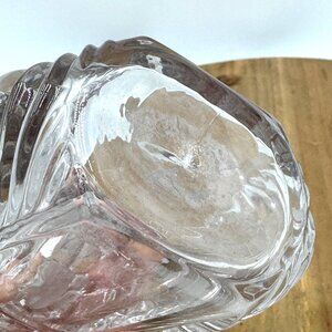 Vintage Glass Decanter With Ridged Design & Pointed Stopper For Spirits Or Decor
