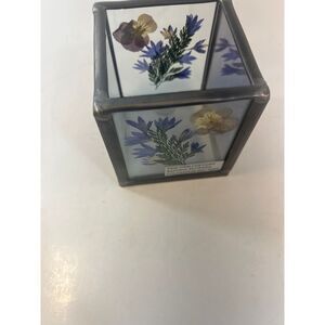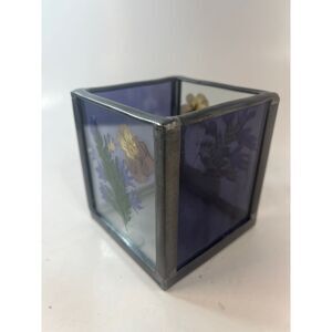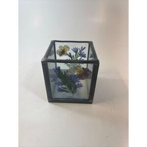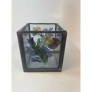 Vintage Glass Display Box Pressed Dried Flowers Blue Purple Botanical 3x3 inch