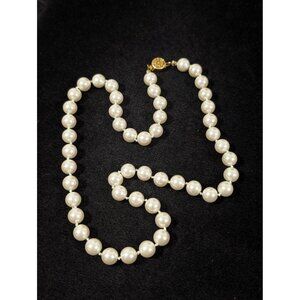 Elegant vintage glass faux pearl necklace in classic off-white, perfect for bridal or wedding occasions. The necklace measures 18 inches, offering timeless sophistication and beauty to any attire.