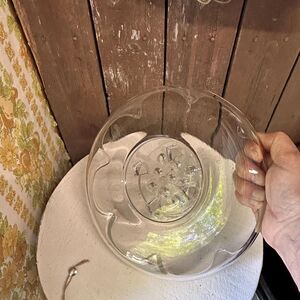 Vintage Glass Flower Frog Bowl, Clear Glass Flower Arranging Dish Wavy Rim Decor