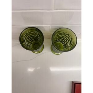Vintage Glass Green Indiana Colony Whitehall Glass Footed Goblet 6" Set of 2