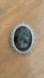 Vintage Glass Hematite Black Cameo Pin Brooch Gold Tone Lady Profile
