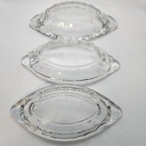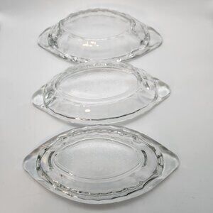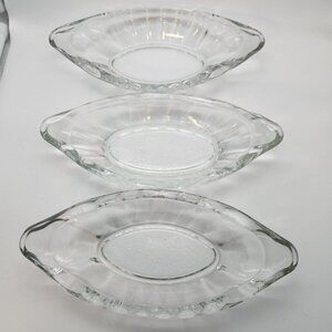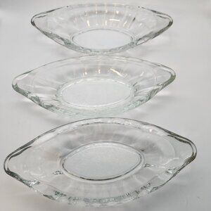 Set of 6 vintage ice cream sundae or banana split boat shaped clear glass dishes. Approximately 9" long, 4.5" wide, 2" tall. Excellent condition. Stamped MEXICO. Summer is coming!