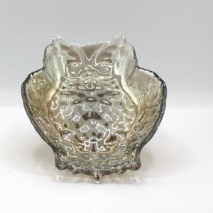 Vintage Glass Iridescent Opalescent Bronze Owl Shaped Candy Dish | Trinket Dish