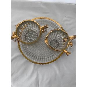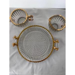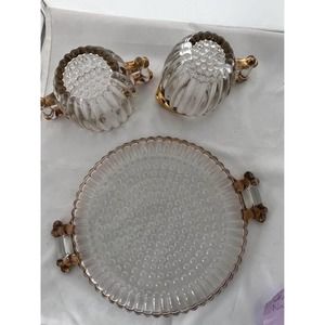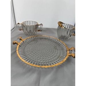 Vintage Glass - Jeannette Glass National 8” tray with creamer and sugar edged with gold paint. Some rubbing off of gold paint has occurred as might be expected with glassware from the 50’s.